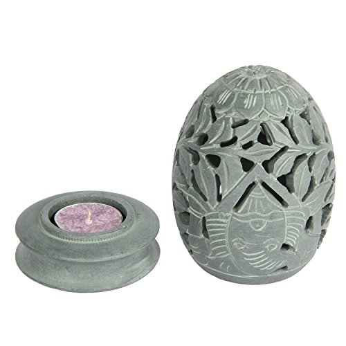 Christmas Gifts Icrafts Natural Soapstone Tea Light Votive Candle Holder with Home Decorative Ganesha Sculpture Design |Handmade| (3.5 X 4 in)