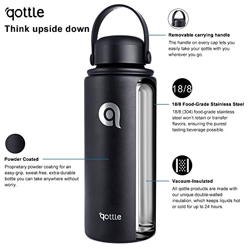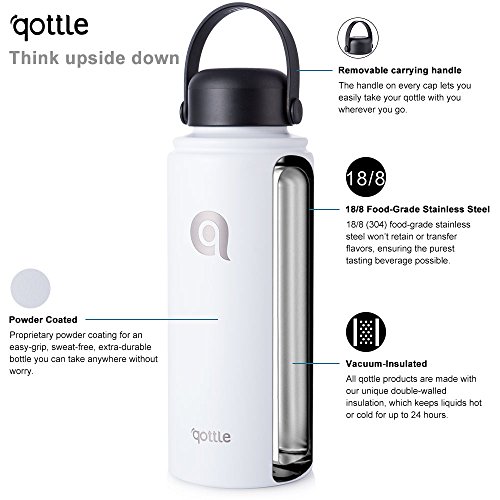 Studio : qottle Publisher : qottle Binding : Misc. Product Description qottle-Think upside down. At qottle, we're turning the premium water bottle world upside down by offering high-quality, 100% stainless steel bottles and tumblers at affordable prices. Our community is a diverse one, because healthy hydration is for the many, not the few. So whether you're a master of the outdoors, a casual creative, or an office superstar, there is a durable and uniquely stylish qottle for you. qottles are eco-friendly, hypoallergenic, customizable, and double-insulated-allowing you to keep cool or stay steamy as long as you need. Introduction: Qottle is a vacuum-insulated stainless-steel mug that is easy to snap open and closed, leak-proof when sealed shut and is great for using in your home, office and even outdoors. This vacuum insulated water bottle is designed as the perfect companion for daily life or travel and is fantastic for both hot and cold drinks. Vacuum insulation keeps beverages hot for up to 24 hours and cold for up to 24 hours. This travel flask is rugged and durable with a stainless-steel interior and exterior. Features: 2.3" Wide Mouth Opening Non-slip powder coated Double Wall Vacuum Insulated Keeps Hot up to 24 Hours, Keeps Cold up to 24 Hours BPA-Free, 18/8 Stainless Steel Limit your need for refills with this large capacity bottle. The handle on the lid makes it super easy to carry and store Best gift For all the festival or anniversary Package: 1 X qottle 32oz Stainless Steel Drink Bottle