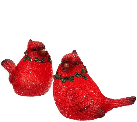 Set of 2 Illuminated Christmas Birds (Red Green)