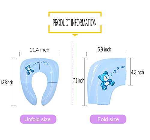 Studio : FABE Child Safety CO.,Ltd Publisher : FABE Child Safety CO.,Ltd Binding : Baby Product Product Description Baby Portable Travel Folding Reusable Training Toilet Seat This toilet training seat is designed to help your children learn how to use the toilet bowl with confidence,keeping them security and comfortable. It's a perfect potty trainer for little boys and girls in lavatory.Improve Childcare and Cleanliness, cover the public toilet seat, avoids direct contact with public toilets and helps effectively prevent the spread of germs. It is very sturdy, anti-rust.Wear-resistant anti-slide pad can prevent the potty seat moving around.Keep your baby from falling into the toilet.This potty seat is designed with large amounts of strengthening ribs.So you do not need to worry that it will be deformed it is bearing force. Foldable and portable, the product is a well replacement for potty chair during travel. Color:Blue Folding Travel Potty Seat dimensions: Measurements: Unfolded size: 13.5'L x 11 'W x 1'H Folded size: 7'L x 6'W x 2'H Suitable for 1 to 6 years old,boys and girls. Package includes: 1 *baby foldable training potty seat 1 *firm carry bag with zipper Frees parents from holding their kids when they need to use a toilet; helps to improve childcare and cleanliness; will be a smart choice for modern and busy families.