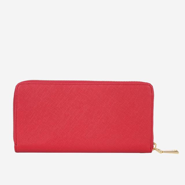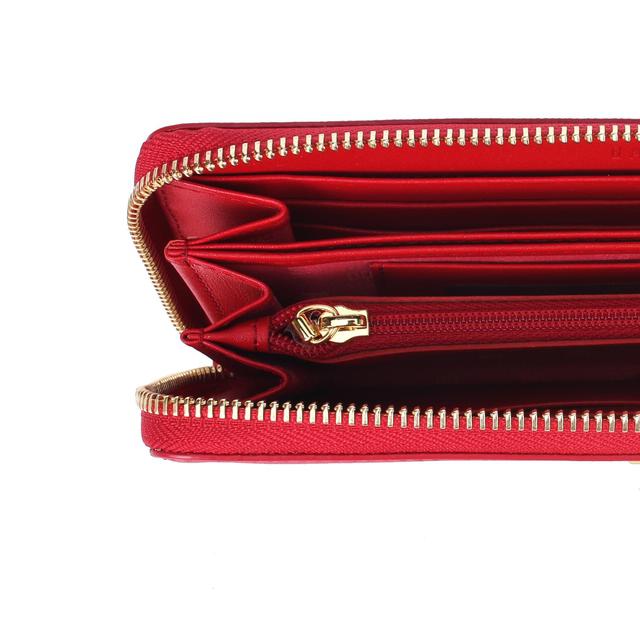 레드 컬러의 견고한 사피아노 패턴 위에 골드 DD 장식으로 포인트를 준 장지갑입니다.