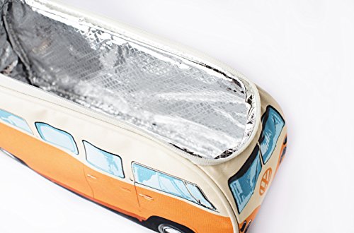 • This Volkswagen lunch tote is modeled after the 1965 VW camper bus with a surf board handle for easy carrying. It is made of Oxford canvas with a fully insulated interior to keep your food at the perfect temperature all day long. Great for school lunches, fields trips, and family picnics.