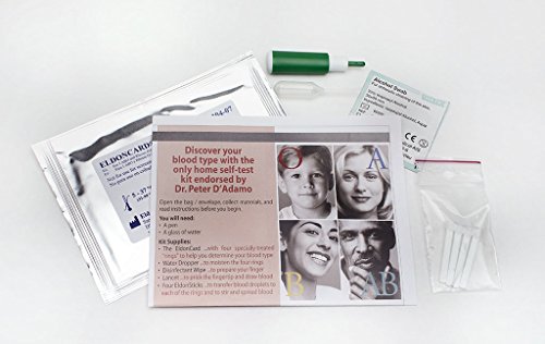 -. Binding : Health and Beauty -. ProductGroup : Health and Beauty -. ProductTypeName : HEALTH_PERSONAL_CARE -. Title : Blood Type Eldoncard Typing Test Kit Includes: 1 Eldoncard, lancet, gauze, alcohol wipe, micropipette