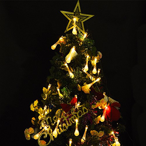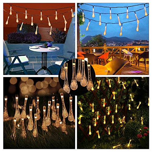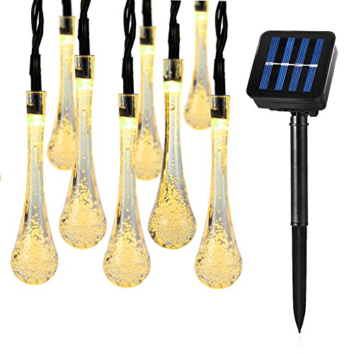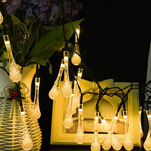 LEDGLE Solar String Lights LED Water Drop Lights Decorative Solar Fairy Lights, 30 LED Lights, Warm White, 20ft, 8 Modes, Perfect for Decorating House, Garden and Courtyard
