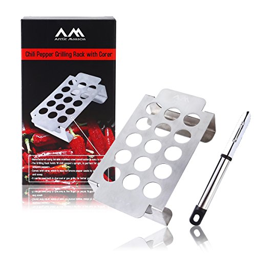 Chili Pepper Rack, Arctic Monsoon, Thick Stainless Steel Grilling Jalapeno Chile Roasting Rack with Corer, Silver
