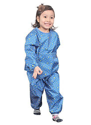 This smock is perfect for messy projects. The smock are perfect for an all over protection and with the waterproof material you can rest easy that you little ones clothes will stay clean. Two-piece for the ultimate in clothing protection. Features a large catch all pocket for holding art supplies and catching spills. Shoulder velcro. Sized to fit 2 to 6 years of age.Feature