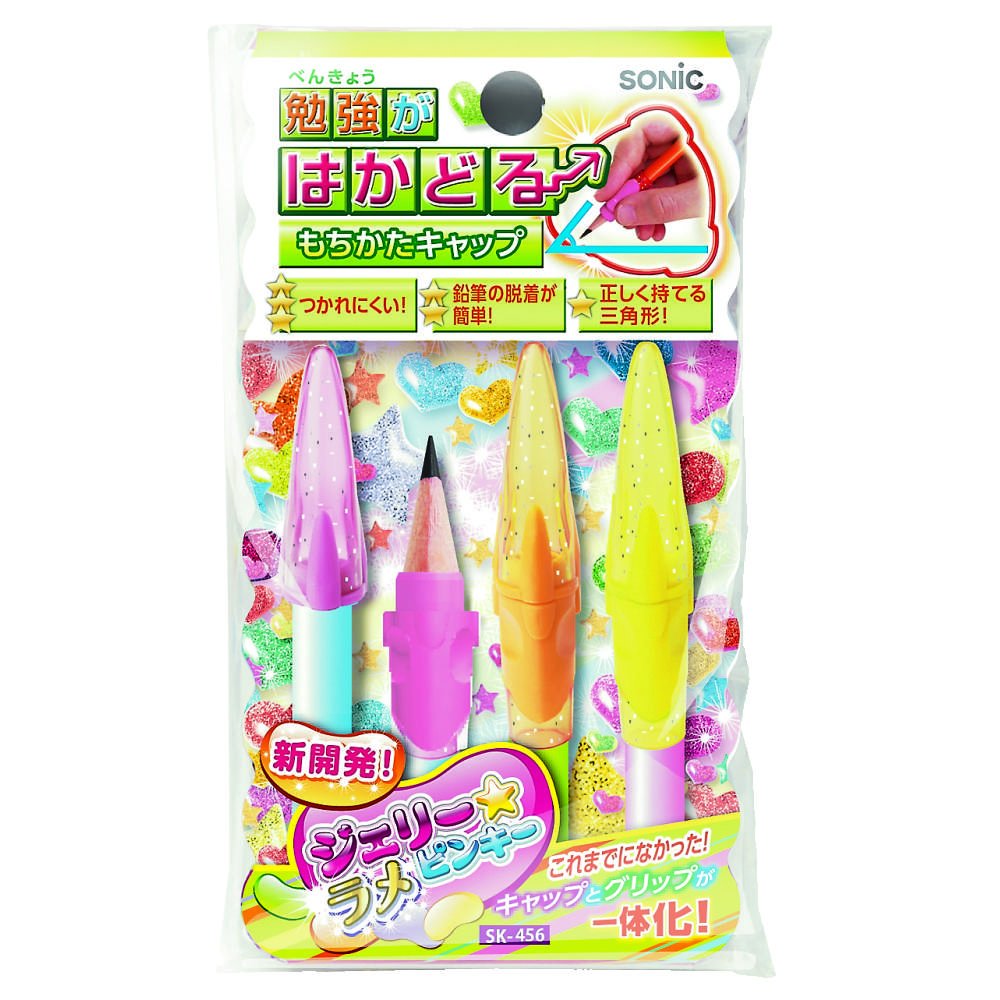 Sonic Mochikata How to Hold Pencil Cap - Pack of 3 - Jelly Glitter Pinky