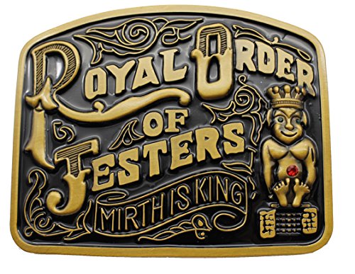 Studio : The Quiet Witness Publisher : The Quiet Witness Binding : Apparel Product Description This is a new production ROJ Royal Order of Jesters Belt Buckle. Finished in an antiqued gold tone with black enamel reliefs, the detail is absolutely superb! Measuring 3.75 inches across and 2.75 inches tall and set for belts up to 1.5 inches in width. The billiken has excellent detail including brilliant sparkling green rhinestone eyes and a large sparkling red rhinestone belly button. Ships in a gift box, makes an excellent gift for a Jester brother. We also carry ROJ Genuine Leather high quality belts, item number 1010005 and this buckle in an antiqued silver tone color item number 4031759.. 0