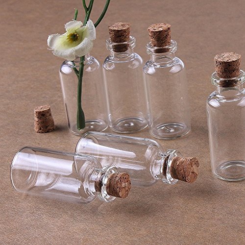 - Clear blown glass, mini treasure bottles with cork stoppers for interchangeable pendant art, message in a bottle charms, keepsake charms, ETC.