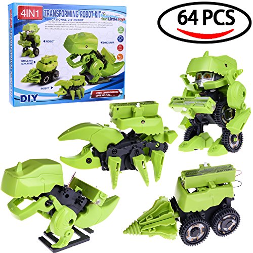 -. Feature : INCLUDES: This DIY building block set contains 64 assembly pieces, and the model box is equipped with an instruction manual, stickers, battery box, nails, and gears. Batteries are NOT included. / CREATIVITY: Kids are able to transform this robot into four machine models, including a dinosaur, robot, insect and drilling machine. The assembly process will not only enhance their manipulative abilities but also spark their imagination and empower creativity. / EDUCATIONAL GIFT: This STEM toy set is a wonderful gift for kids who love machines. The exquisite designs and the packaging make this toy an awesome gift for children's birthday, Christmas, Children's Day, Thanksgiving, etc. / SAFE AND DURABLE: ALL Fun Little Toys' products are made by environmental friendly plastic and premium grade materials, which are sturdy, durable and safe. We have all the certifications and safety test results for this toy. / RECOMMENDATION: Recommended for children who are at least 3 years old. Do not keep the small parts of the toy in mouth in case your child swallows it.