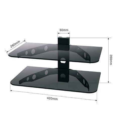 - Feature : PROFESSIONAL 2 tier Glass Component Rack / Glass Shelves Measure 12 deep x 16 inches wide and hold up to 22lb / Distance between top and bottom rack is 12 inches / Solid Steel structure with black glass / Hardware and build in level are included