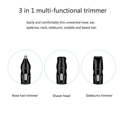 - ❤ 3 in 1 Multi-Functional Trimmer - Easily and comfortably trim unwanted nose, ear, eyebrow, neck, sideburns, stubble and beard hair.
