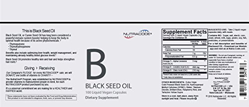 -. Feature : Premium, Immune-System Boosting - BLACK CUMIN SEED OIL: Non-GMO, Vegan, Extra-Virgin, Cold-Pressed - GUARANTEED TO OPTIMIZE YOUR HEALTH! / ***Nutracode pledges to give one month's supply of vitamins to children for every bottle sold! Through the NutraGive Program, we are committing to universal mission of making the world a happier and healthier place!*** LIVER BOOSTER: Studies show that black cumin seed oil maintains liver enzymes at healthy levels. It keeps glutathione, one of the key protective antioxidants in the liver, unoxidized and ready for action. / LOSE FAT & INCREASE METABOLISM: When it comes to shrinking your waistline - preliminary research hints that black cumin seed ranks up there with green tea as one of the best herbs to help you lose weight. / MALE & FEMALE REPRODUCTIVE HEALTH: In regards to sexual potency, when men took 2.5 ml of black cumin seed oil over the course of two months, researchers saw significant improvement in their sperm count, volume, mobility and overall sexual drive health in both men and women. / MEMORY & BRAIN HEALTH: Laboratory studies have shown black cumin seed oil inhibits acetylcholinesterase. By inhibiting this enzyme, black seed may shore up your ability to focus and hold onto memories and seems to help them relax and curb anxiety.