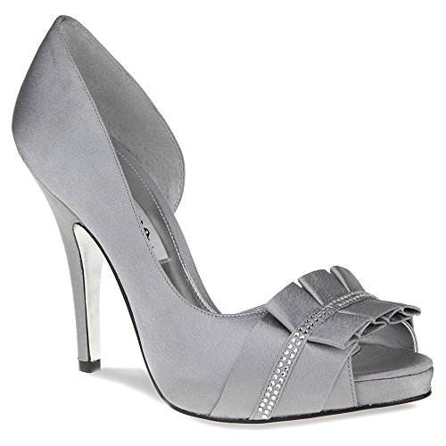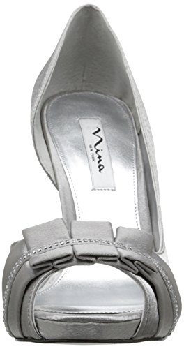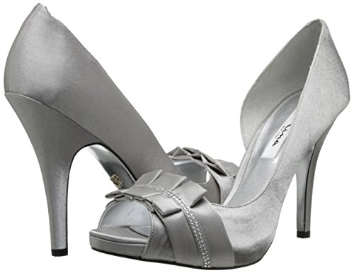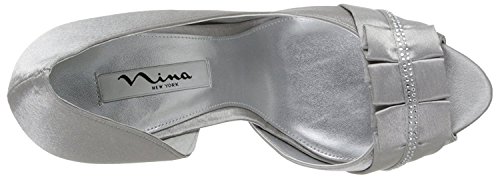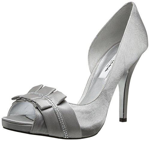 Studio : Nina Publisher : Nina Binding : Apparel Product Description Be definitively fabulous in the Nina Elanna platform evening shoe. This women's dress shoe has a sleek satin or dazzling glitter upper for eye-catching style. A lightly cushioned footbed eases every step you take atop the high, wrapped stiletto heel and platform of the Nina Elanna half d'Orsay pump, while a synthetic sole keeps you feeling smooth and sophisticated. 0