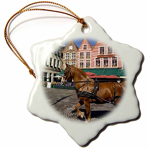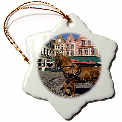 3dRose orn_70281_1 Belgium, Brugge, Market Sq, Horse, Carriage-EU04 CMI0126-Cindy Miller Hopkins-Snowflake Ornament, Porcelain, 3-Inch