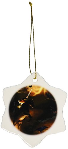 3dRose orn_28906_1 Headless Horseman Rides in Sleepy Hollow Porcelain Snowflake Ornament, 3-Inch