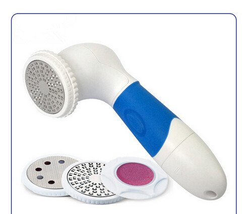 Driven by 2 x AA batteries (not included in the package). Comes with metal callus blade, metal callus polishing blade, skin Polisher, and protection cover.