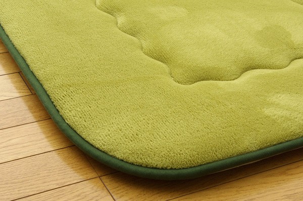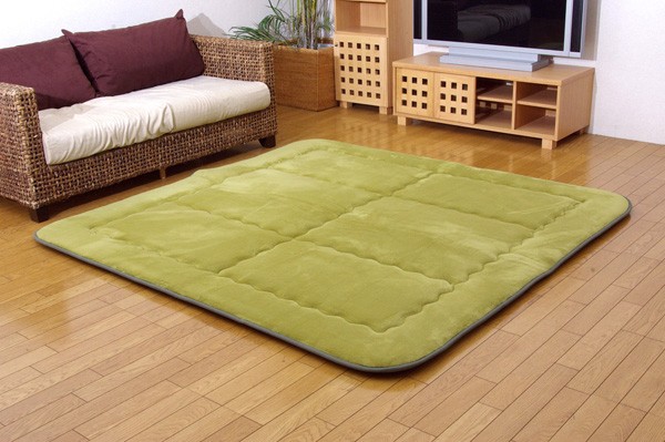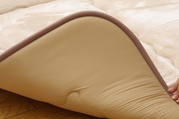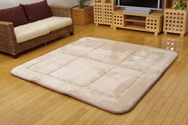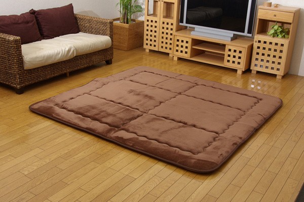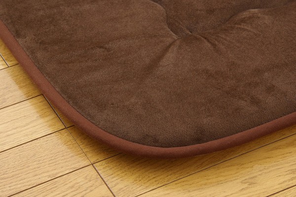 軽くて非常にやわらかい肌感触が特徴のフランネル生地を使用しています。中材にはクッション性にこだわった国産の固綿40mmを使用しています。十分な弾力性があるのでフローリングでのご使用にも最適です。遮音特級LL-30を取得しています。床下への騒音も軽減します。また、こたつと併用するとこたつの熱を床下へ逃しにくくなるので省エネ効果もあります。