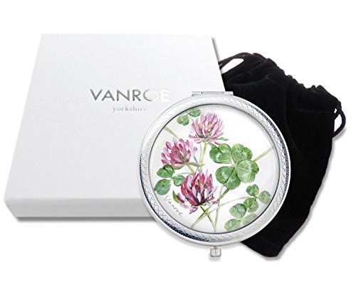 Vanroe 'Lucky Clover' Luxury Compact Mirror in Gift Box - UK Designer, Good Luck or Leaving Present Idea, Magnified