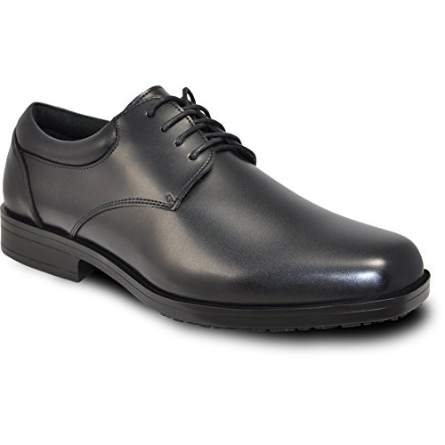 -. Binding : Apparel -. Brand : VANGELO -. Department : mens -. Feature : Fits Slightly Smaller. Recommend Order Half Size Larger. / Professional Slip Resistant Outsole made per ASTM Industry Standard, and the American Podiatric Medical Association recommend professional footwear for better foot health products. US Patent Pending Special Designed Shape and Pattern to enable Units to Channel Fluids and Penetrate Hard Slick Surfaces to Increase Ability to Resist Slipping. / Smooth Synthetic Leather Upper at Dress Style with a Classic Plain Square Toe Design. This Upper Material Has Been Treated by a Special Up-to-Date Technology which is Never Crease, and Scuffing E-Z Clean. / Supportive and Comfortable Ortholite Removable Insole to Keep Your Comfort Every Step and All the Time, and Lace-Up Closure Allows for a Secure and Adjustable Fit. / Full Size Range From 6 to 17 with Medium and Wide Width. -. ProductGroup : Shoes -. ProductTypeName : SHOES -. Title : VANGELO Professional Slip Resistant Men Work Shoe NEWPORT Black-Wide Width Available-Fit Half Size Small