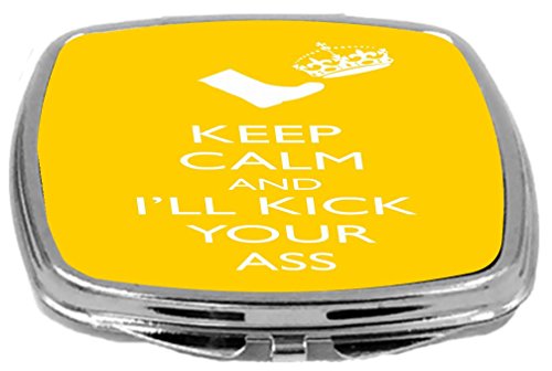Rikki Knight Compact Mirror, Keep Calm or I'll Kick Your ass Yellow