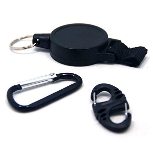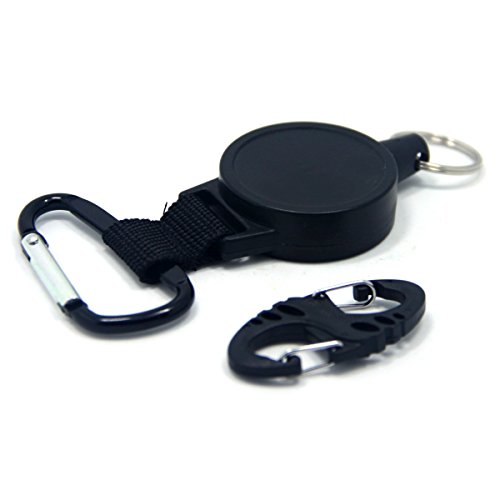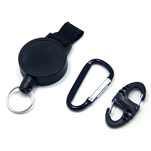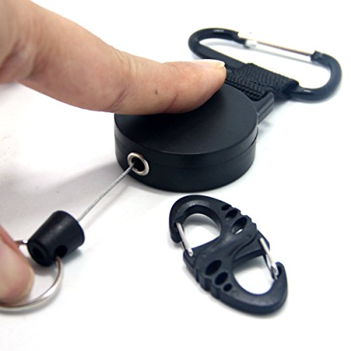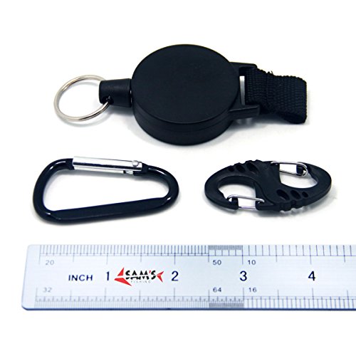 SAMS Heavy Duty Securit Retractable Key Chain Reel with Polycarbonate Case, Aluminum Carabiner, Split Ring and Carabiner, 24 inch Steel Cable