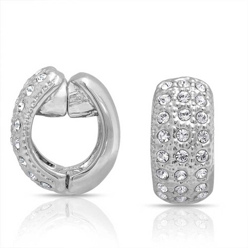 Our magnetic huggie hoops are fun and fashionable. Clip on hoop earrings make sensational gifts for most women. Let the mother of the bride look great on her daughters wedding day or start shopping early for a perfect Mothers Day gift for your mom, aunt or grandmother. Our magnetic crystal earrings are comfortable. They are designed in a classic style that will take you from day into night. Three rows of pave shimmering crystals light up your ears and will light up your wardrobe. Our fashion hoop earrings make a perfect gift. There is no need for pierced ears to add a sensational accessory to your jewelry collection.Feature