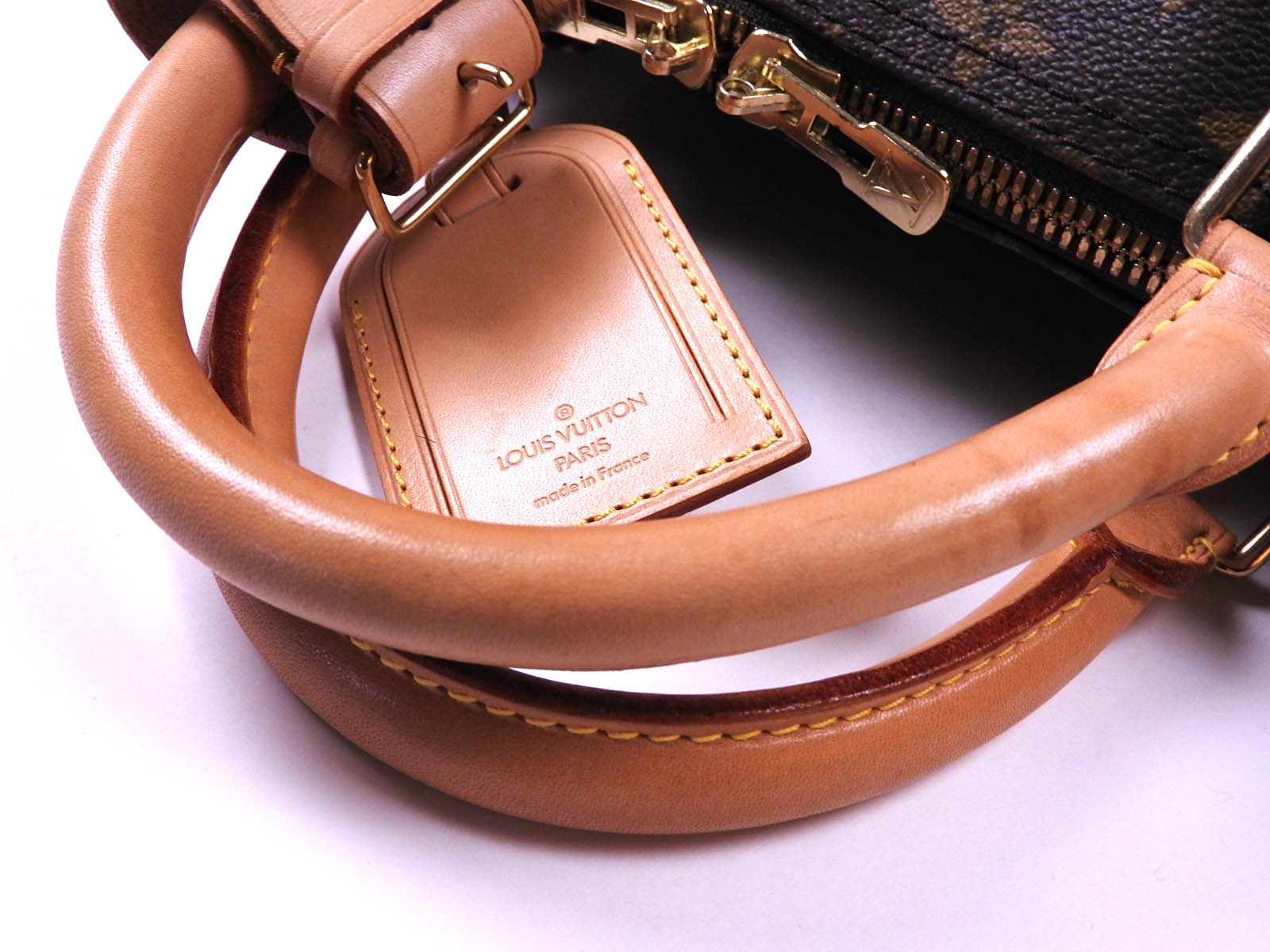 | Snaps、Zippers and Hardware | Barely used feeling. Tiny scratches. Some green stains around the screws. Some discoloring in the padlock and the key. |