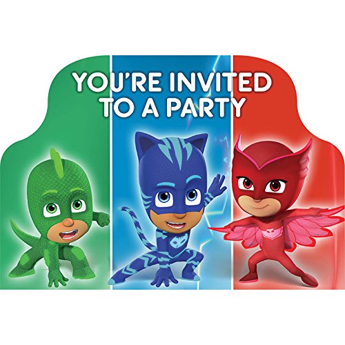 Studio : Amscan Publisher : Amscan Binding : Toy Product Description Invite your friends and family to a hero's celebration with our PJ Masks Invitations! The front of each invitation features the PJ Masks as well as the message "You're Invited to a Party". The reverse side has lines to fill in event details. Measures 4" x 6.25". Includes 8 invitations, save-the-date stickers, seals, and envelopes per package. 0