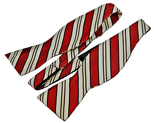 Bruno Piattelli Holiday 100% Silk Stripe Bow Tie, Red/Ivory