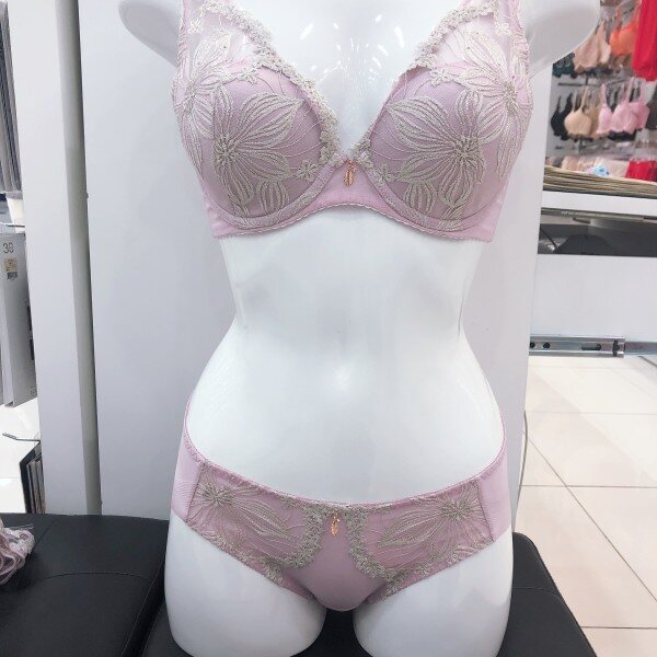 꾸띄르 라인으로 고급스럽고 화려한 배색의 조합으로 이루어진 풀컵 스타일의 브래지어 팬티 세트 입니다.