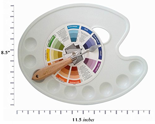 -. Binding : Office Product -. Brand : Art Embraced -. EAN : 0735757057549 -. Feature : Plastic Artist Palette 11.5" by 8.5". This palette is washable. Medium size for more roomy space. Total of 9 wells and a thumb hole for better grasp. / Pocket Size Color Wheel. Please note: this is a small color mixing wheel reference tool, therefore the letters are small. Diameter is 5.25" made of cardboard. / Palette Knife with aluminum spatula of 1" long. Handle is made of wood. Great little tool very useful to paint, mix or create texture on your work. -. Label : Art Embraced CBP1 -. Manufacturer : Art Embraced CBP1 -. MPN : CBP1 -. PackageQuantity : 1 -. PartNumber : CBP1 -. ProductGroup : Art and Craft Supply -. ProductTypeName : ART_SUPPLIES -. Publisher : Art Embraced CBP1 -. Studio : Art Embraced CBP1 -. Title : Artist Palette Value Combo - 11.5" by 8.5" Mixing Painting Tray with 9 Wells, Palette Knife Tool , and Pocket Size Color Wheel -. UPC : 735757057549