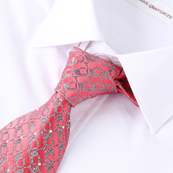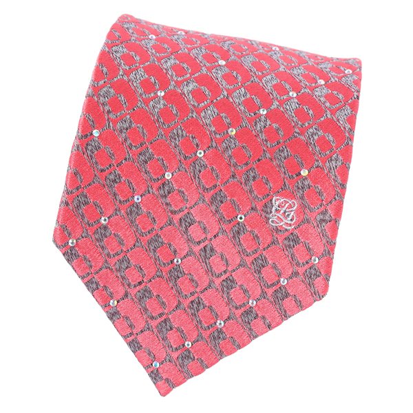 1. 골드베이지색 바탕에 핑크색 큐브문양의 큐빅이 포인트인 넥타이