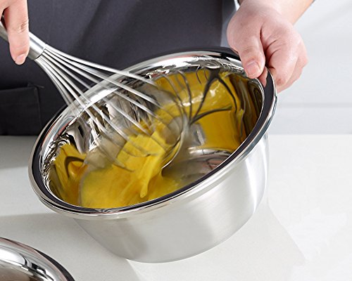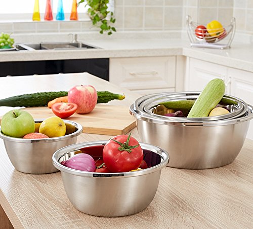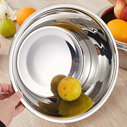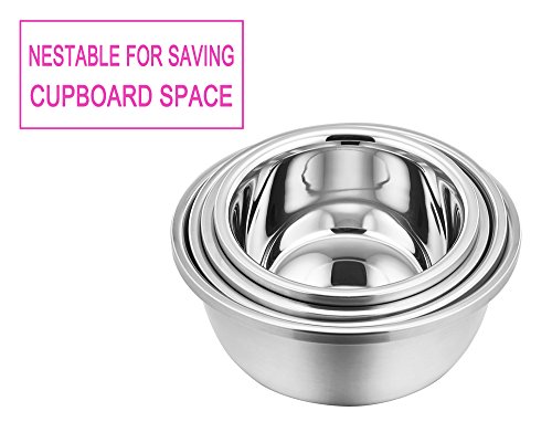 PREMIUM MATERIAL - These mixing bowls made of high quality stainless steel, Rust free and durable for many years to come; Healthy and nice enough to be used as both mixing bowl and serving bowls