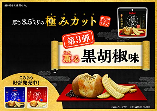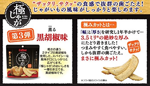 原材料:じゃがいも(遺伝子組換えでない)、植物油、デキストリン、食塩、黒こしょう、砂糖、ぶどう糖、コーンスターチ、オニオンパウダー、酵母エキスパウダー(豚肉を含む)、粉末しょうゆ(小麦・大豆を含む)、発酵酵母エキスパウダー、シナモン、調味動物油脂/調味料(アミノ酸等)、香辛料抽出物(乳成分を含む)、酸味料、香料、酸化防止剤(V.C)