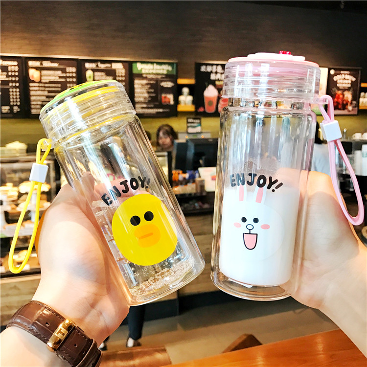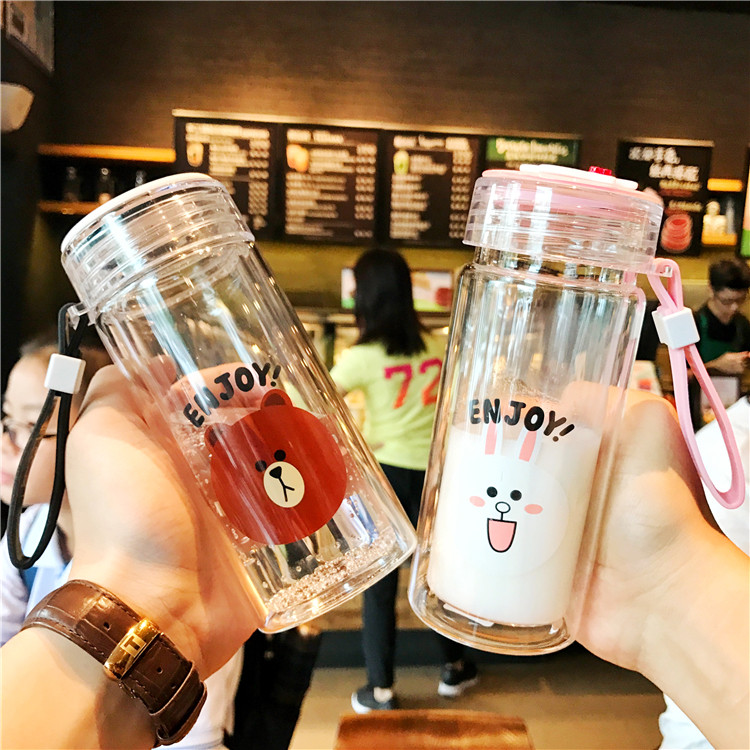 创意卡通双层玻璃杯可爱男女学生便携耐热情侣韩版迷你随手水杯子