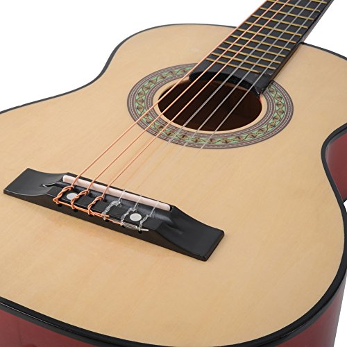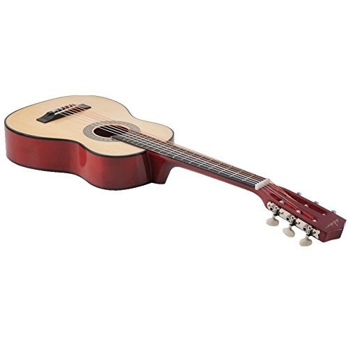 Specifications Finish: Natural Gloss Top: Laminated basswood Back and sides: Laminated basswood Neck: Nato Fingerboard Bridge: maple Machine: Chrome Covered Tuners Nut/Saddle: plastic Pickup: N/A Number of Frets: 18 Overall Length: 30 inch Nut width??1.6 inch Scale length: 7.5 inch Body length: 13.8 inch Accessories Included: Gig Bag, E-tuner, Extra strings, Picks, Strap,cleaning cloth 0 |