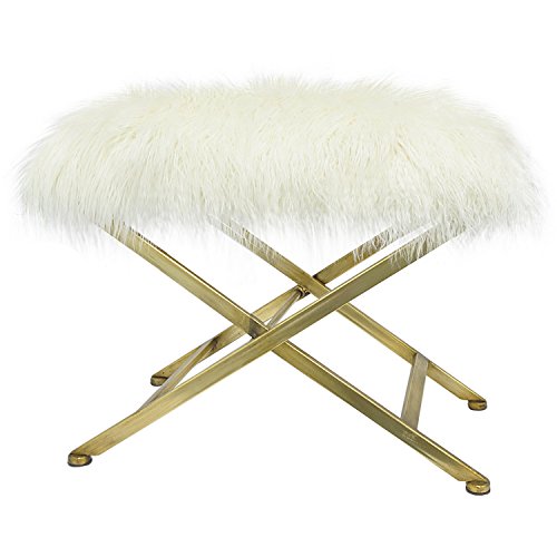 Three Hands Metal Bench Home Décor Accent, White