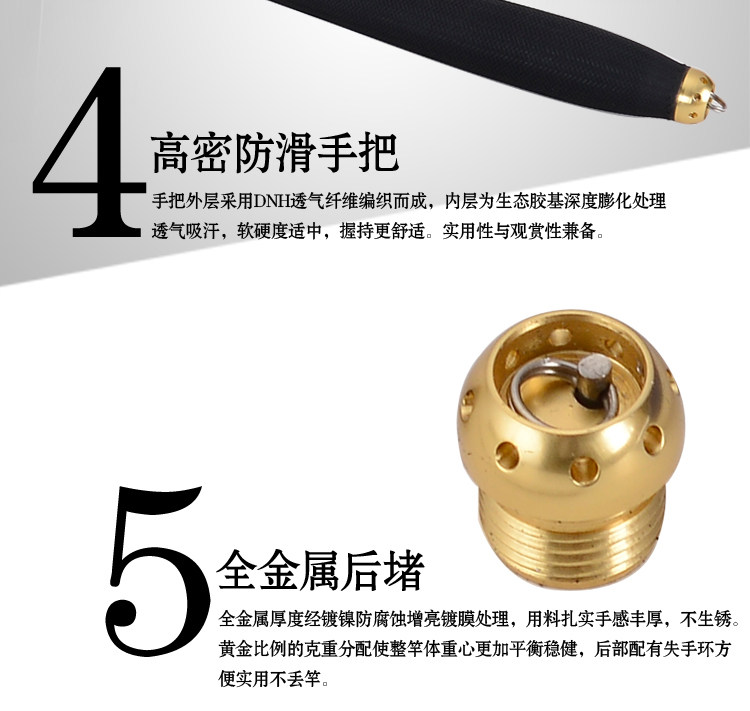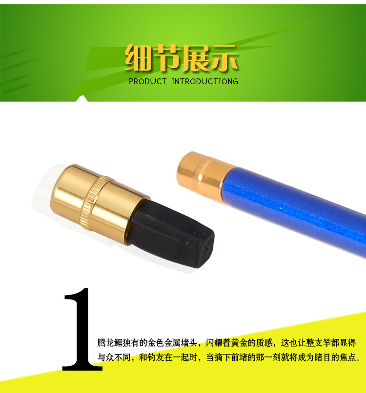5.4 meters long, the first diameter 1.1mm, element diameter 15mm, the number of sections 6, shrink 110cm, net weight 124g