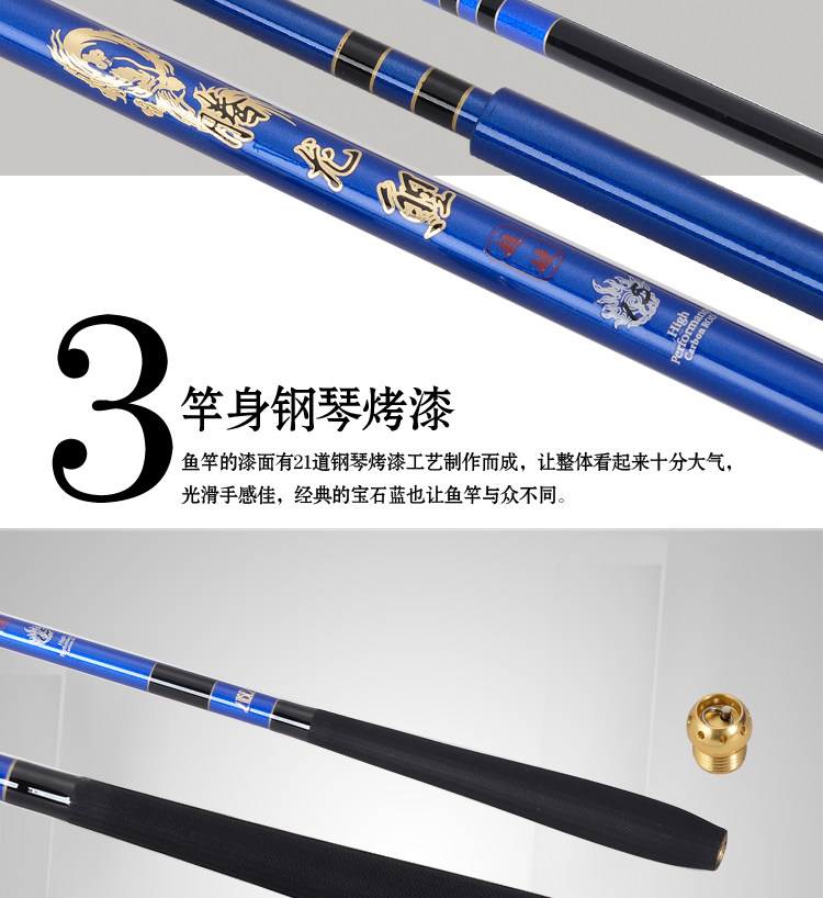 6.3 meters long, the first diameter 1.1mm, element diameter 17.3mm, the number of sections 7, shrink 110cm, net weight 168g