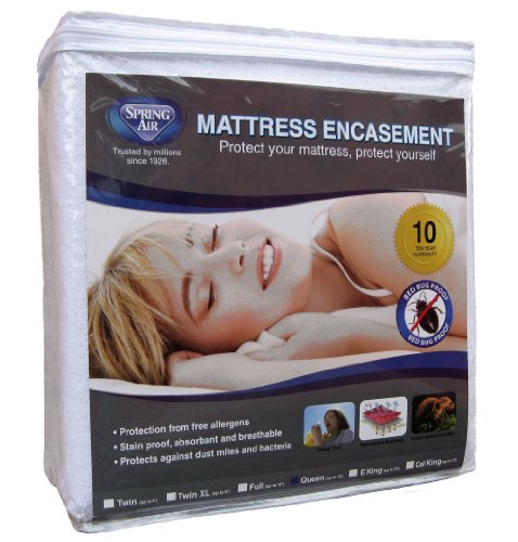 -. Binding : Misc. -. Brand : Spring Air -. Color : White -. EAN : 0857599003079 -. Feature : Machine Washable Warm, Tumble Dry Low Heat / Great For Asthma, Eczema and Allergy Sufferers / Waterproof Protection / Completely Encases the Mattress to make it Bed Bug Proof / Our Moisture Shield Technology is Completely Noiseless and will Not Change the Feel of Your Mattress -. Label : Spring Air International -. Manufacturer : Spring Air International -. Model : MEF46 -. MPN : MEF46 -. PackageQuantity : 1 -. PartNumber : MEF46 -. ProductGroup : Home -. ProductTypeName : HOME -. Publisher : Spring Air International -. Size : Full -. Studio : Spring Air International -. Title : Spring Air Mattress Encasement, Full -. UPC : 857599003079 -. Warranty : 10 year warranty