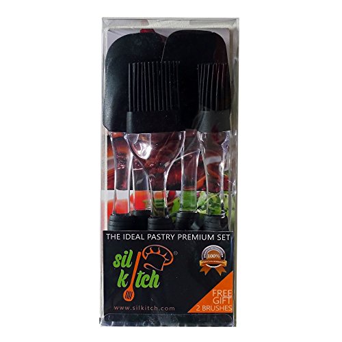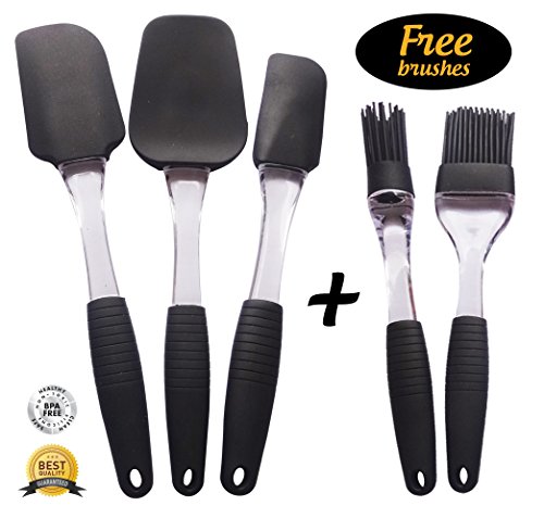 -. Title : Silkitch Premium Set Of 3 Silicone Spatula + Free 2 Silicone Brush - Set Of 5 .Ergonomic Design Heat-Resistant Cooking , Black Non-Stick Flexible Home Kitchen Tools For Cooking , Baking And Grilling