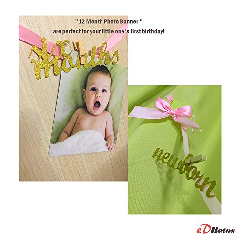 Studio : EDBETOS Publisher : EDBETOS Binding : Toy Product Description Monthly photo banner can be the perfect way to show off all of your baby's photos from their first year of life! "12 Month Photo Banner " are perfect for your little one's first birthday! The glitter wording includes: "newborn" "one month" "two months" "three months" "four months" "five months" "six months" "seven months" "eight months" "nine months" "ten months" "eleven months" and "twelve months". 0