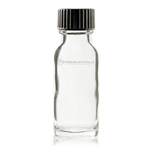 Premium Vials B24-12 Boston Round Glass Bottle with Cap, 1/2 oz Capaciy, Clear (Pack of 12)