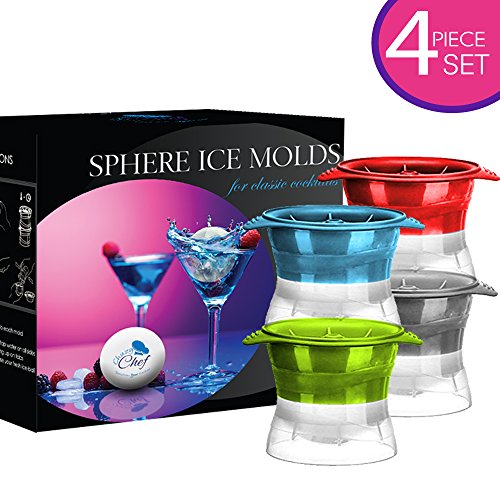 Sphere Mold Ice ball Maker – Set of 4 Round Shapes Silicone Large Ice Cube Balls 2.5 inch – Great for Parties Whiskey and all Cold Beverages Premium Bar Accecsory - Chuzy Chef