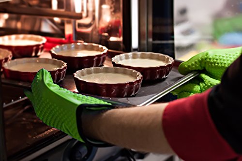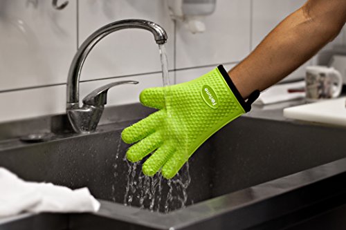 Silicone Grilling Gloves - Best Heat Resistant Oven Mitts For Cooking, Baking, BBQ & Boiling Non-Slip Potholders with Internal Cotton Layer - Includes Mini Oven Mitt (Green)