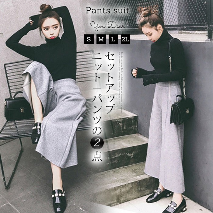 セットアップ ニット レディース ワイドパンツ ガウチョパンツ トップス ニット セーター ハイネック 防寒 カジュアル ガウチョパンツ 九分丈 キレイめ 30代 40代 50代 60代 お洒落 着痩せ S M L 2L ママ 母親 プレゼント ギフト ファション 秋 冬 ★素材 :ニット・ボリエステル★カラー:写真参考※お客様ご使用のPC環境により商品画像のカラーが多少異なる場合があります。仕入時期により多少デザインなど異なる場合があります。ご了承ください。★サイズ(cm)S:トップス丈54 バスト106 ウエスト70 パンツ丈87M:トップス丈55 バスト110 ウエスト74 パンツ丈88L:トップス丈56 バスト114 ウエスト78 パンツ丈89XL:トップス丈57 バスト118 ウエスト82 パンツ丈90※サイズは人の手によって測っているため、1-3cmの誤差がある場合がございます。予めご了承下さいませ。
