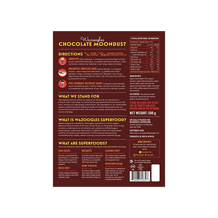 Wazoogles 슈퍼 후드 식물성 프로틴 엔 어떻게(아무리) 콩 (HEMP)삼베 스무지 초콜렛 완전무 첨가 500g