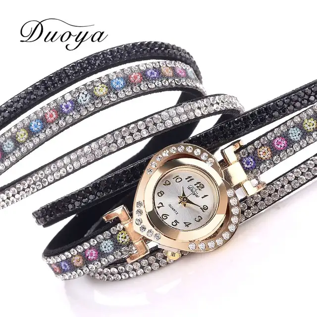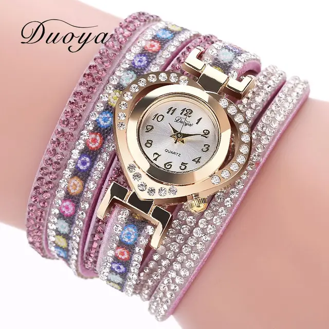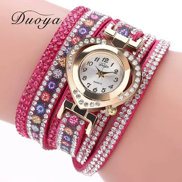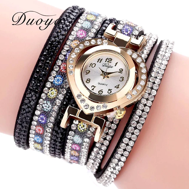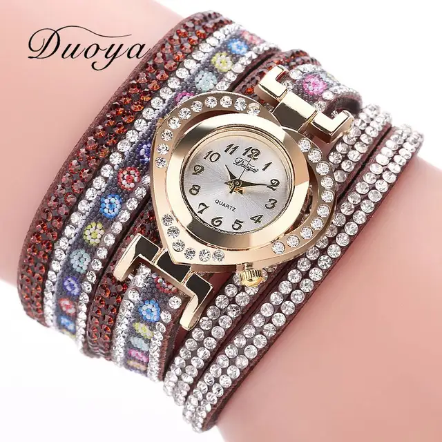 | [해외] Duoya 브랜드 여성 팔찌 시계 패션 드레스 시계 꽃 숙녀 손목 시계 럭셔리 골드 심장 라인 석 빈티지 시계 DY132 |
