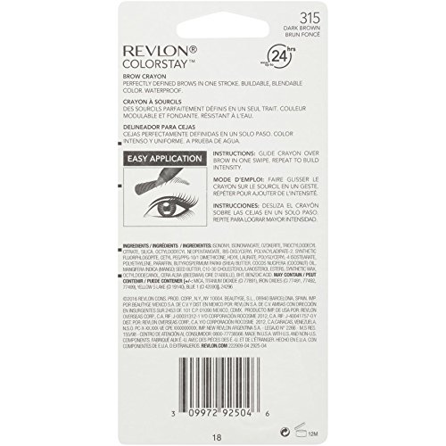 The Revlon ColorStay Brow Crayon defines and shapes the eyebrow in just one easy sweep. The ColorStay longwear formula is waterproof and wears up to 24 hours. The crayon color is blendable and buildable and can applied many ways for more intense looks. Revlon uses a unique was to powder formula that lasts all day. Easy to apply to a beautiful, more defined look. Available in 4 rich shades. * Claim based on Nielsen Scantrack Service for long wear brands for YTD WE 12/31/2016, Total US and xAOC. Copyright 2016, The Nielsen Company.Feature